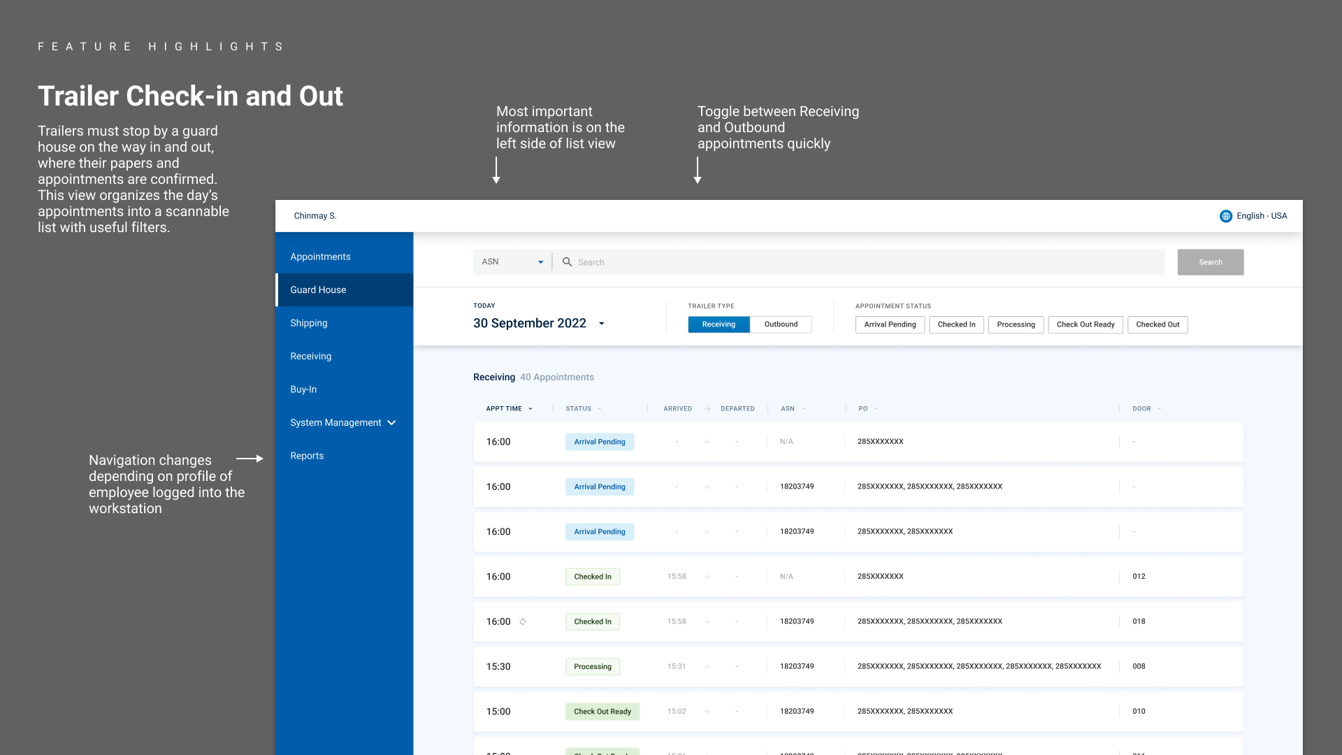 Despite the challenges with AS400, the warehouses were already running in a highly efficient manner, with innovative workflows that have made the client a household name in wholesale retail in the US. Our goal was to craft a system that would not require employees in each functional area to re-learn any workflows. In order to learn how all these moving parts came together, the team and I dove headfirst into the world of warehouses and got familiar with the whole system from inside-out!